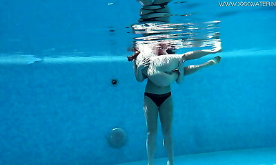 Two hotties bare in the pool