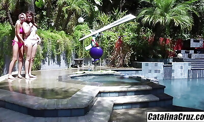 latinas in bathing suits squirt in the swimming pool GGmansion